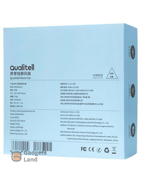 Мини-вентилятор портативный на шею Qualitell H4 ZSM240614. В устройстве применяется конструктивная технология обдува с двумя турбинами, что позволило увеличить объем выдуваемого воздуха в два раза. Воздуховод с 18 выходными отверстиями охватывает практически всю длину вентилятора и эффективно обдувает лицо, шею или плечи. Гипоаллергенный материал, из которого изготовлен вентилятор, отличается высокой прочностью и долговечностью. Форма «ободка» вентилятора подходит для использования людьми с шеей разной ширины - 10-30 см. В конструкции используется высококачественный двигатель с низким энергопотреблением, который также отличается сверхнизким уровнем шума - около 25 дБ. Аккумулятор емкостью 2000 мАч обеспечивает длительное время автономной работы - до 3,5 часов. Небольшой вес 270 гр дает возможность комфортно использовать вентилятор даже на протяжении длительного времени.