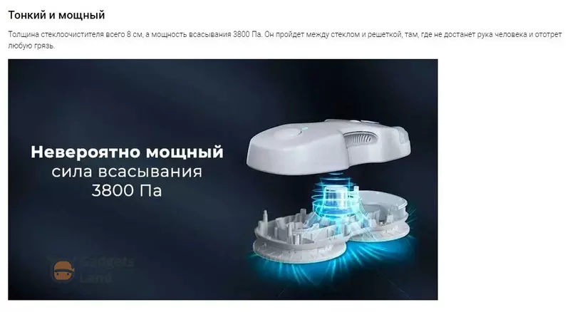 Особенности: автоматическая остановка, обход препятствий, мойка безрамных поверхностей, автоматическое определение зоны уборки, звуковая индикация, светодиодная индикация